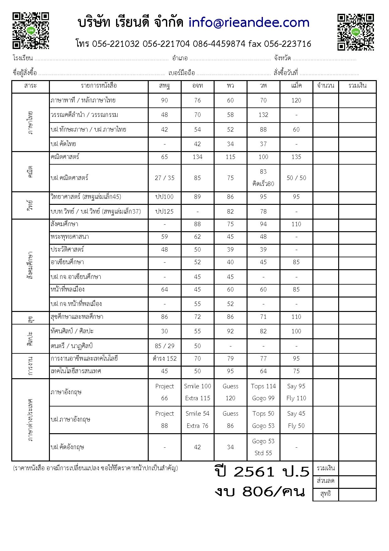 อับเดทล่าสุด 11 เมษายน 2561คลิ้กเพื่อดูว่าอับเดทอะไรบ้าง รายการหนังสือระดับประถมศึกษา O รายการหนังสือ ป.1 (pdf) งบ 625 บาท/คน/ปี O รายการหนังสือ ป.2 (pdf) งบ 619 บาท/คน/ปี O รายการหนังสือ ป.3 (pdf) งบ 622 บาท/คน/ปี O รายการหนังสือ ป.4 (pdf) งบ 673 บาท/คน/ปี O รายการหนังสือ ป.5 (pdf) งบ 806 บาท/คน/ปี O รายการหนังสือ ป.6 (pdf) งบ 818 บาท/คน/ปี |